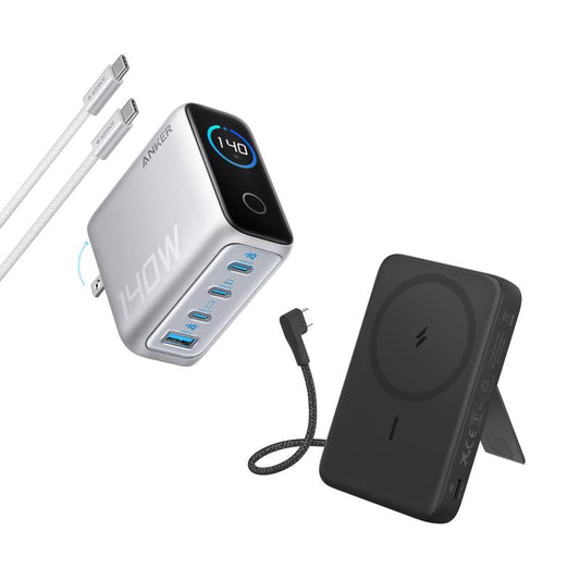 Anker Laptop Charger (140W, 4-Port, PD 3.1) with USB-C Cable + Anker Zolo Magnetic Power Bank (10K, 30W, Built-In USB-C Cable)